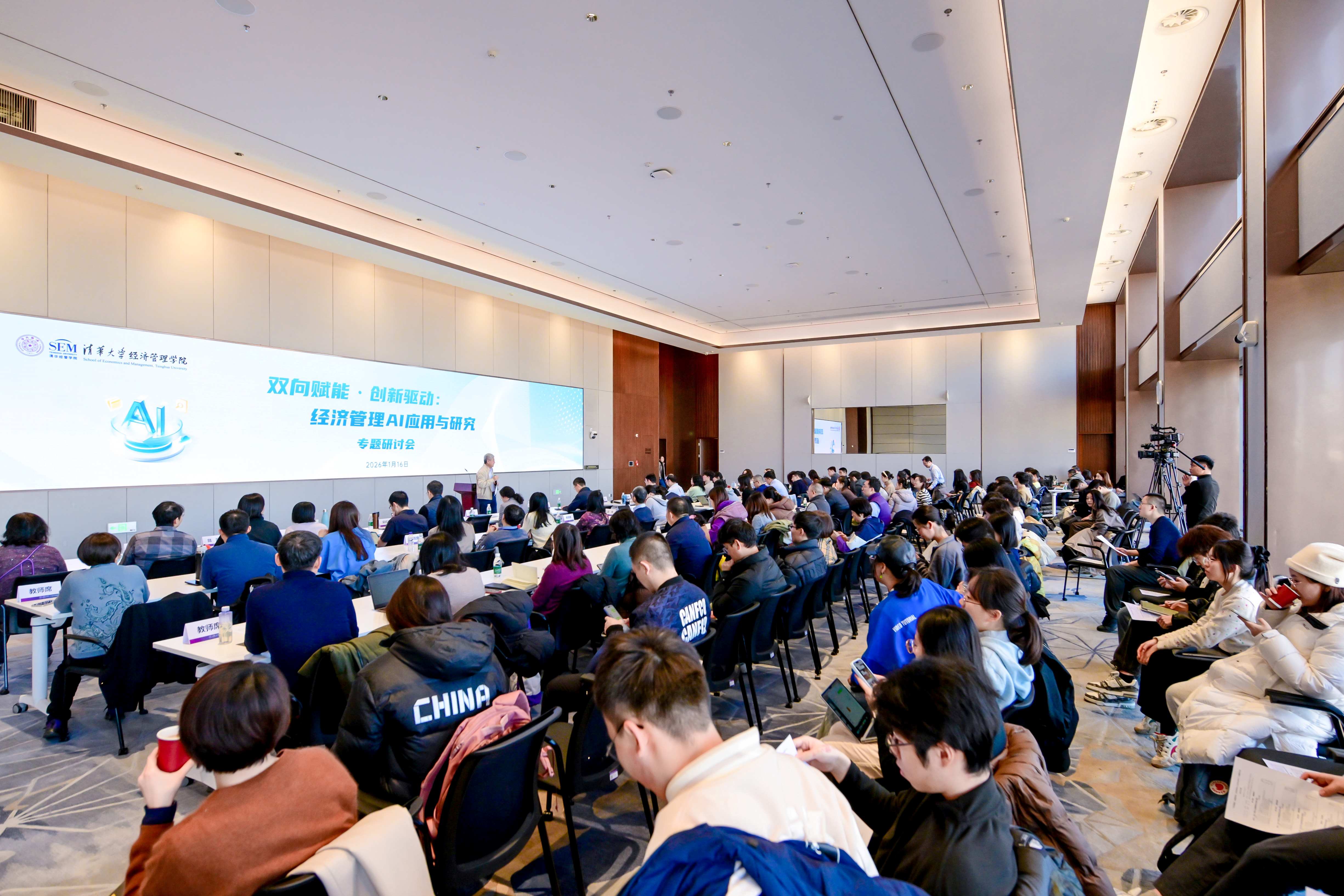 2026年1月16日,清华大学经济管理学院“双向赋能·创新驱动:经济管理AI应用与研究”专题研讨会在建华楼举行。本次研讨会响应国家“人工智能+”行动部署与高等教育学科交叉融合的发展趋势,聚焦人工智能与经管领域的深度融合,旨在搭建学术研究与产业实践的交流平台,赋能教师发展,促进内外协同合作,为经管学科高质量发展注入新动能。经管学院人工智能研究工作组组长、副院长徐心,副组长、党委副书记刘庆主持研讨会。