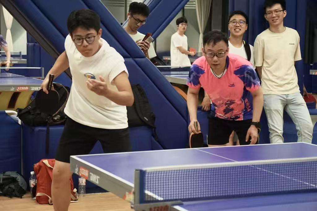 9月8日晚,师生乒乓球赛在北体育馆热烈举行。五位教师与数十位同学积极参与。比赛首先通过随机抽签将师生分为两组进行循环赛。各组选手迅速磨合、配合默契,展现出良好的体育精神与团队意识。经过数轮激烈比拼,A组1队与B组5队凭借出色发挥晋级决赛。决赛采用“双打-单打-双打”赛制,比赛过程紧张激烈,扣人心弦。双方选手各展技艺,发球精准,回球精彩,屡次赢得现场观众的掌声与喝彩。最终,由段志恒、吴哲维、马浩云、韦路易、黄世杰、刘瑞组成的1队夺得冠军,由何平、纪晓辉、马骏、夏士博、王昱皓、卢思易组成的5队获得亚军。