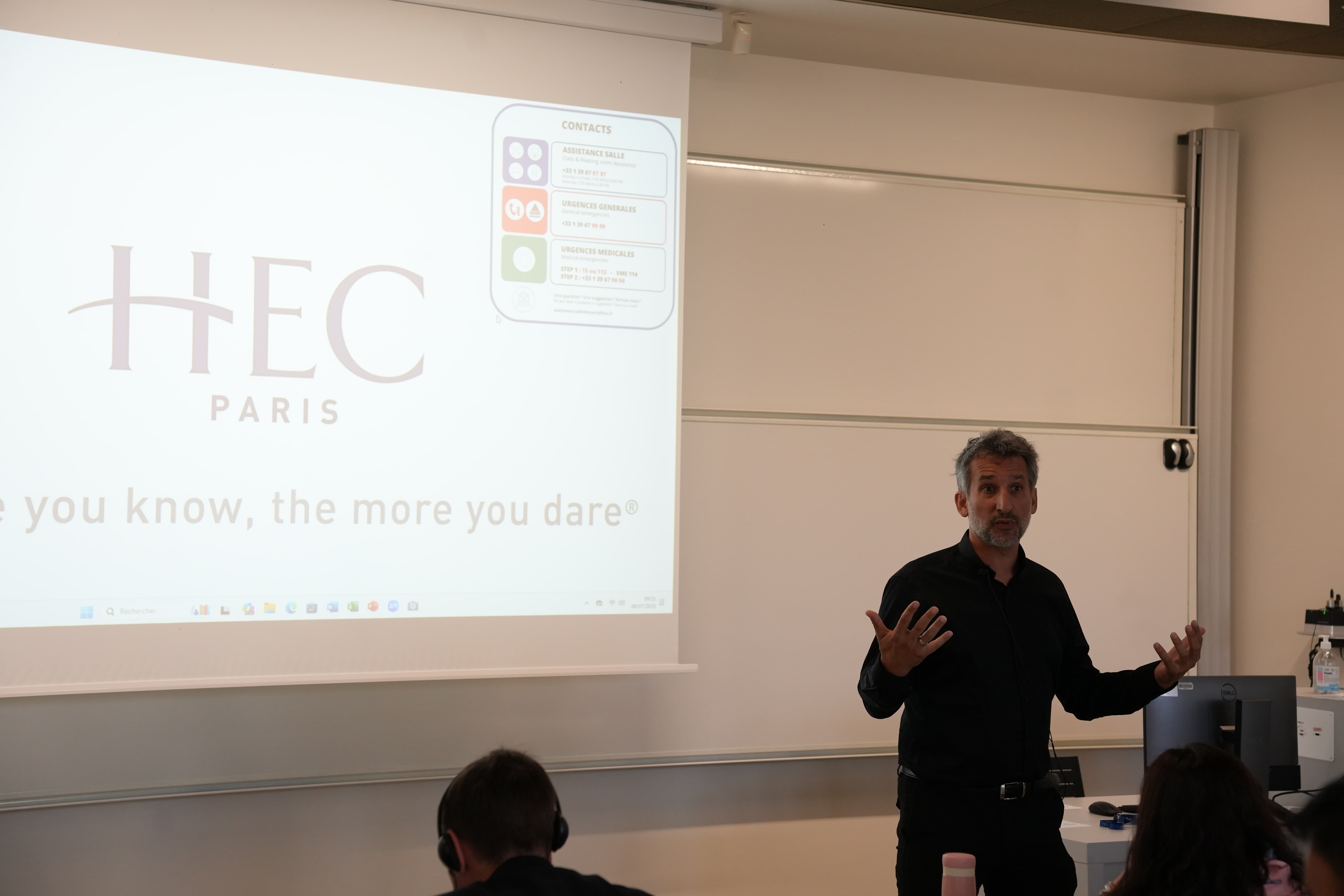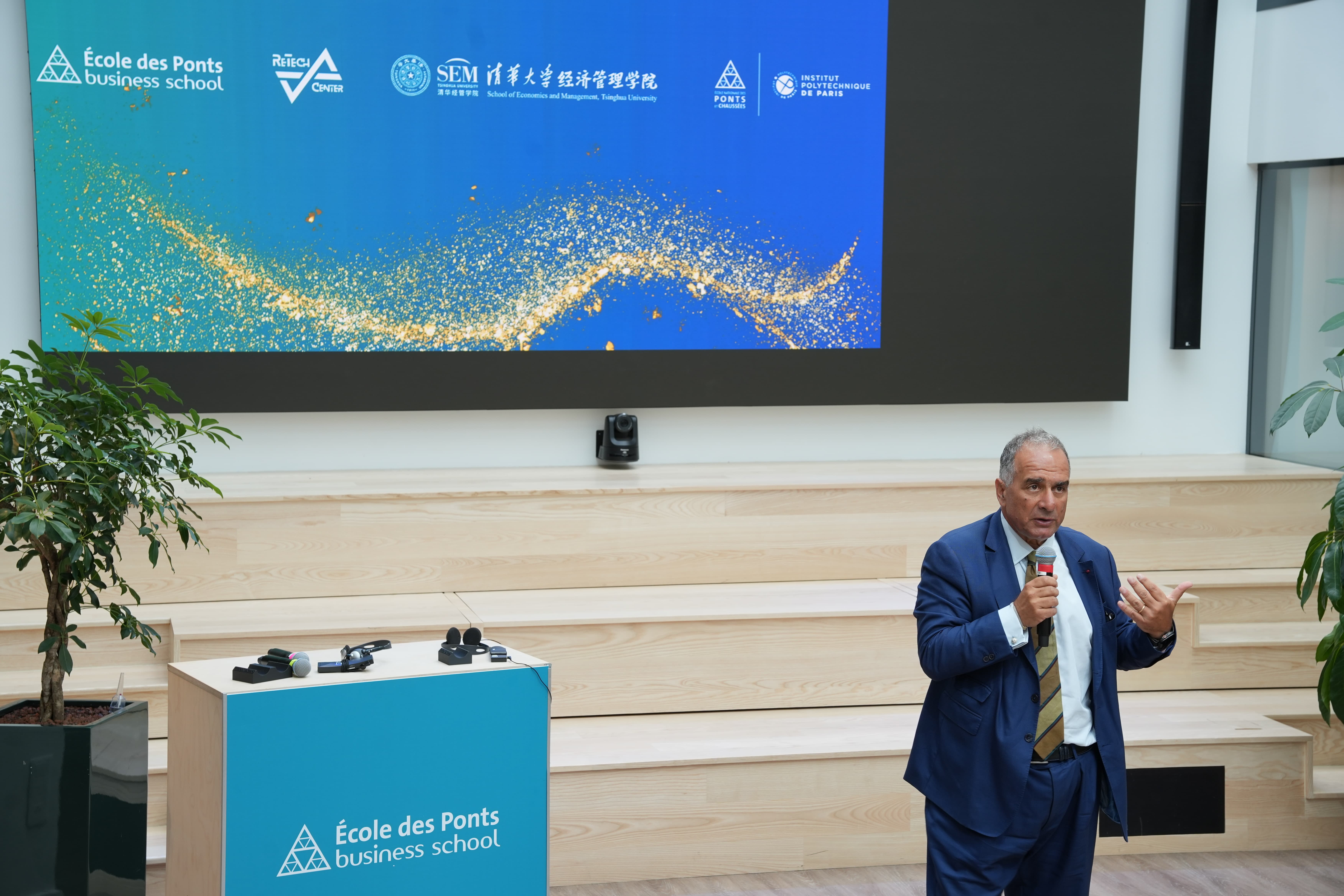 路桥商学院、巴黎高等商学院联袂授课环节,巴黎高等商学院院长埃洛伊奇·佩拉奇(Eloïc Peyrache)与法国国立路桥大学商学院院长阿龙·罗森(Alon Rozen)分别发表精彩致辞。他们的研究和教学领域非常多样化,包括创新、商业模式、全球化、系统思考、商业规划等,为世界各大企业培养了大批优秀的管理者和领导者。