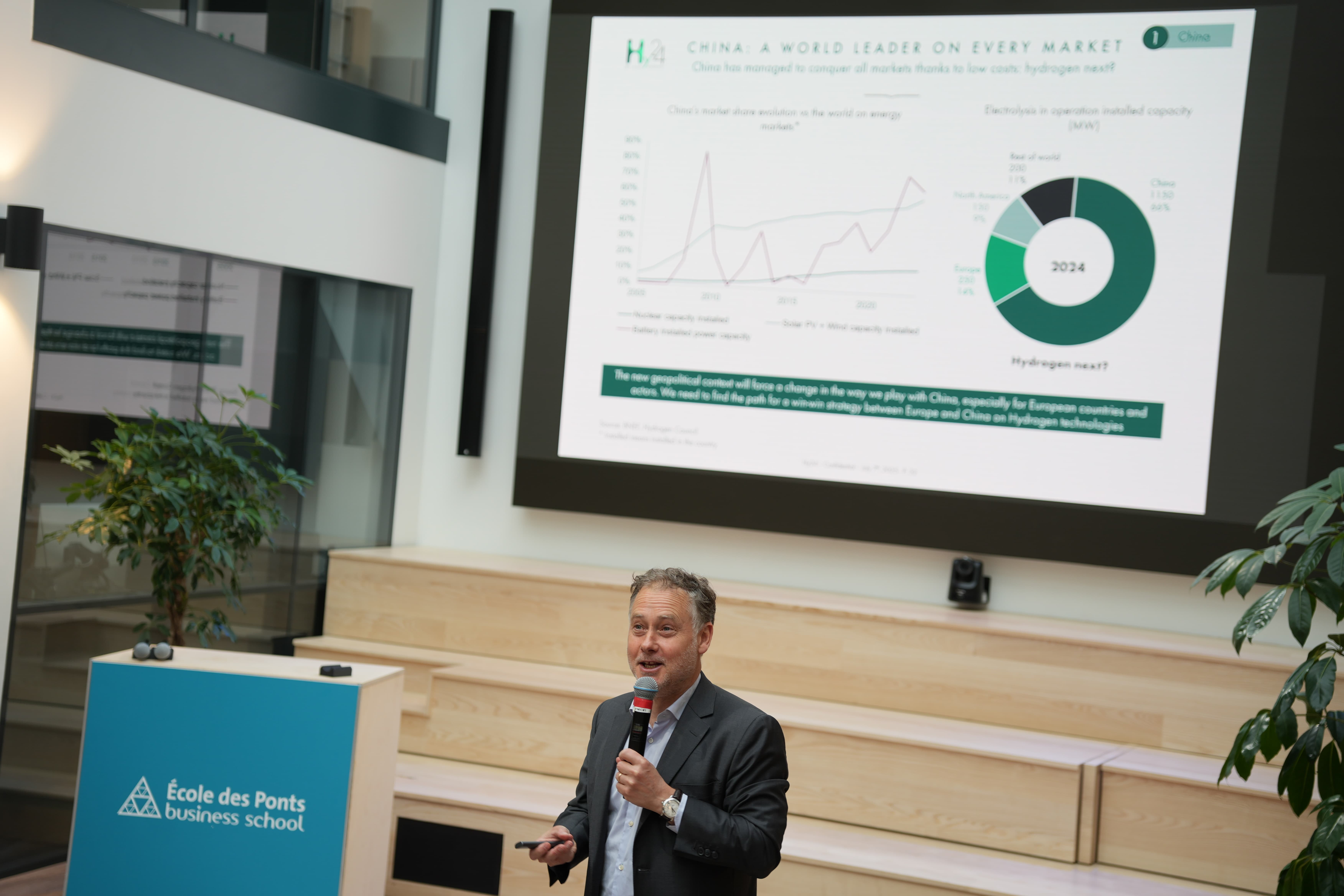 世界氢能理事会前秘书长皮埃尔-艾蒂安·弗兰克(Pierre-Étienne Franc)与法国航空防务产业代表人物马万·拉乌德(Marwan Lahoud)发表了演讲。弗兰克聚焦欧洲氢能市场,系统阐释政策驱动逻辑、投资机制与基础设施发展趋势,结合中欧合作案例指出,氢能产业链的规模化突破,关键在于制度协同与资金杠杆,而非单一技术。拉乌德则从国家产业战略高度,补充强调了能源安全与工业能力稳定性的核心地位。