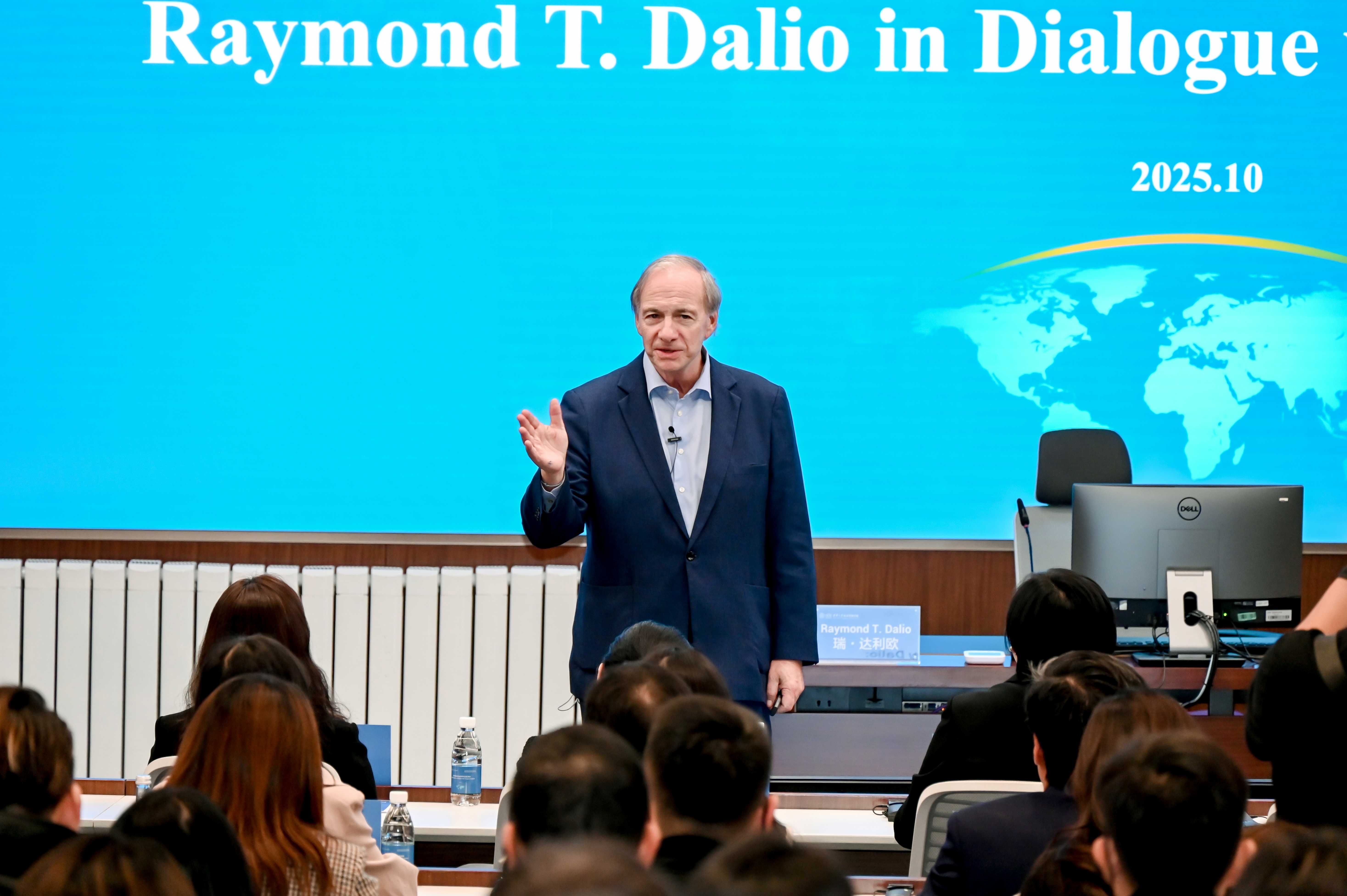 2025年10月17日,清华经管学院顾问委员会委员、美国桥水投资公司创始人及导师瑞·达利欧(Raymond T. Dalio)走进清华经管EMBA课堂,以“大周期与秩序重构”为题授课,围绕投资逻辑、全球经济周期与未来趋势等议题,与300余名清华经管EMBA、TIEMBA、未来科技项目的学生展开分享与交流。学院党委书记薛健主持此次活动,学院副院长何平、院长助理张晨、院长办公室主任顾英杰、EMBA教育中心主任庄丽出席活动。