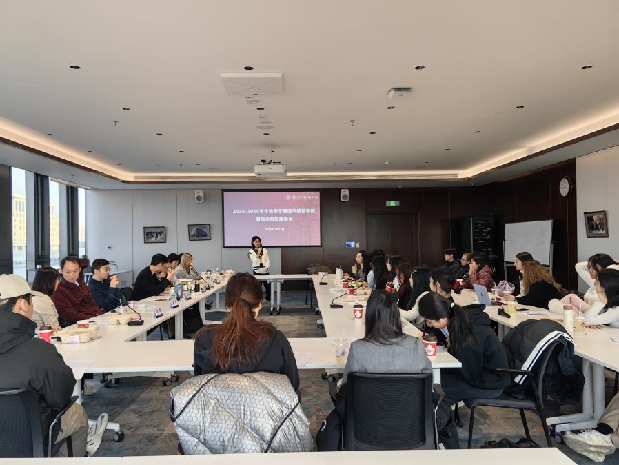 2025年12月11日,清华大学经济管理学院2025年度国际本科生座谈会在建华楼召开。本次活动聚焦国际生在学院的学习体验与发展需求展开深入交流,旨在搭建师生面对面沟通的高效平台,精准解答国际本科生疑问,助力学生全面发展。清华经管学院党委副书记刘庆,副院长林志杰,院长助理、清华大学教学委员会委员张晨,党委学生工作组组长吴添,教学办主任张磊,学生事务办公室副主任刘玥以及20余名来自不同年级的国际生代表参加座谈,活动由2024级本科生谢咏彤主持。
