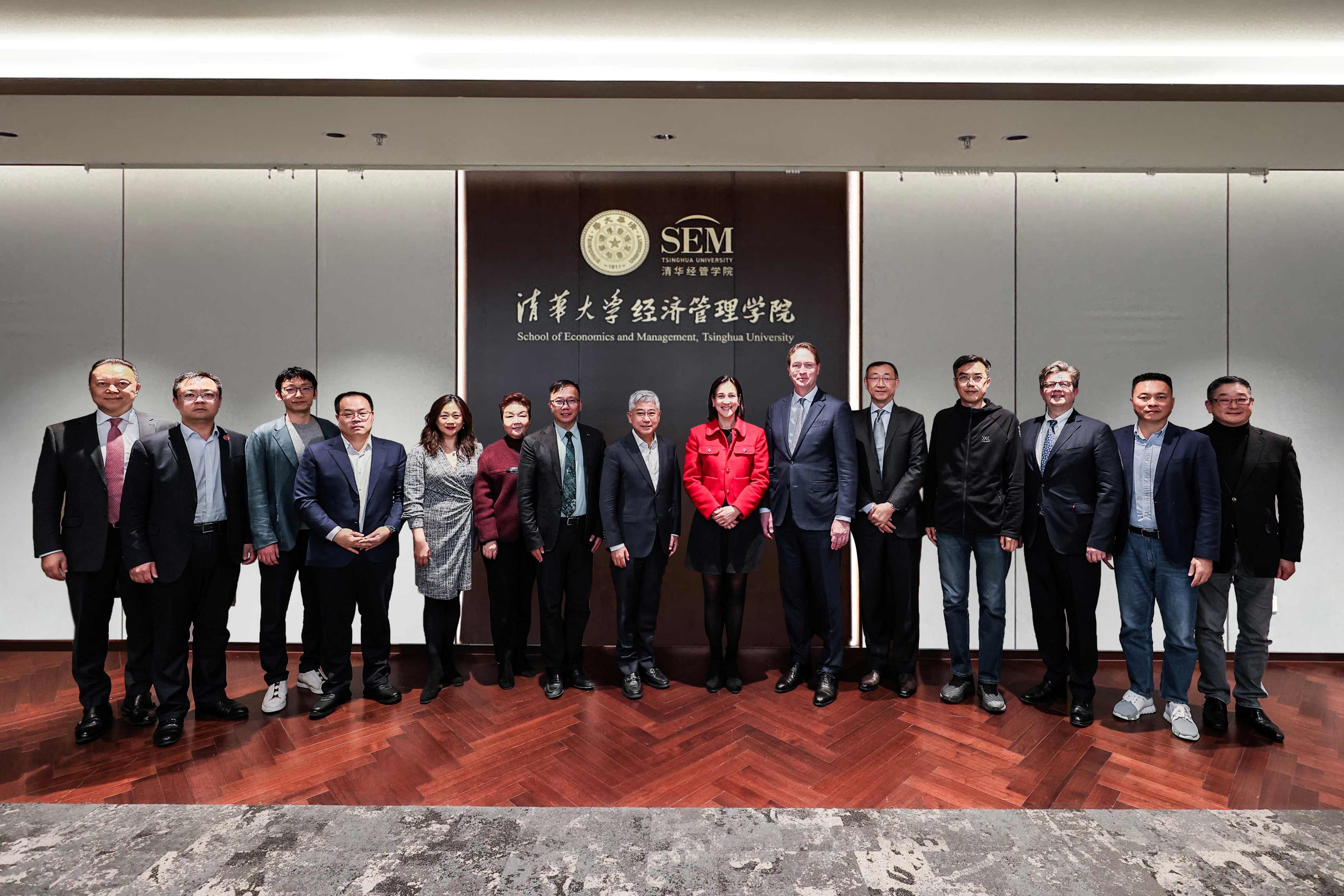 2026年3月21日,清华经管知行·未来科技“新质领航 聚力同行:全球卓越企业的发展与破局之路”座谈会在建华楼举行。清华经管学院院长白重恩、梅赛德斯-奔驰集团股份公司董事会主席康林松、圣加伦大学高管学院院长卡罗琳·弗兰肯伯格(Karolin Frankenberger)、清华经管EMBA教育中心主任庄丽、梅赛德斯-奔驰集团股份公司首席战略官高旭等出席,并与多位校友围绕品牌建设、传统产业数字化变革、企业全球化发展三大核心议题展开深度研讨,共话全球新格局下企业的增长新路径。活动由清华经管学院副院长何平主持。