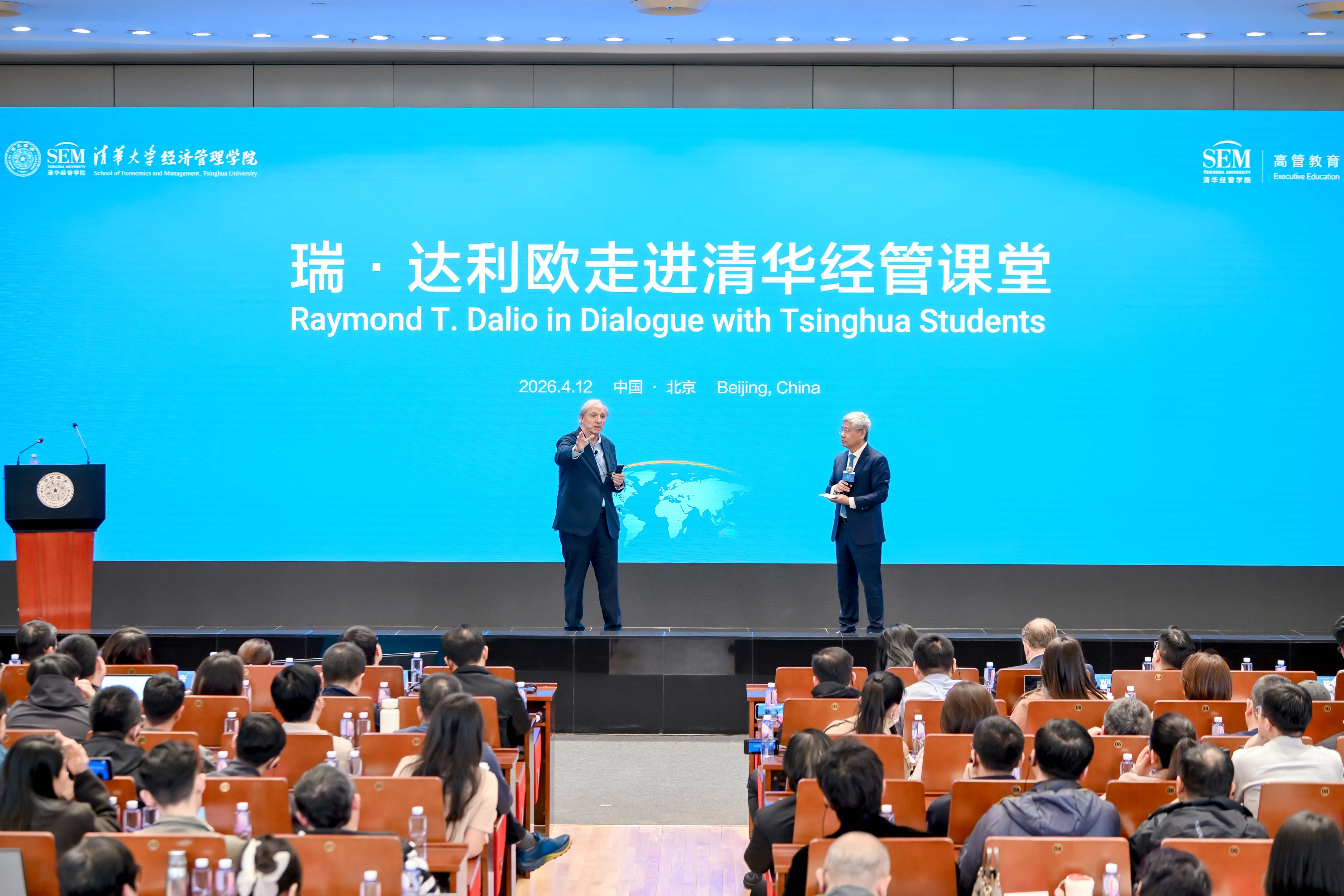 2026年4月12日,桥水投资公司(Bridgewater Associates)创始人、清华大学经济管理学院顾问委员会委员瑞·达利欧走进清华经管课堂,以“投资原则及大周期”为主题,与现场师生及嘉宾深度分享交流。课程由清华大学文科资深教授、清华经管学院院长白重恩主持,清华经管学院高管教育中心承办。