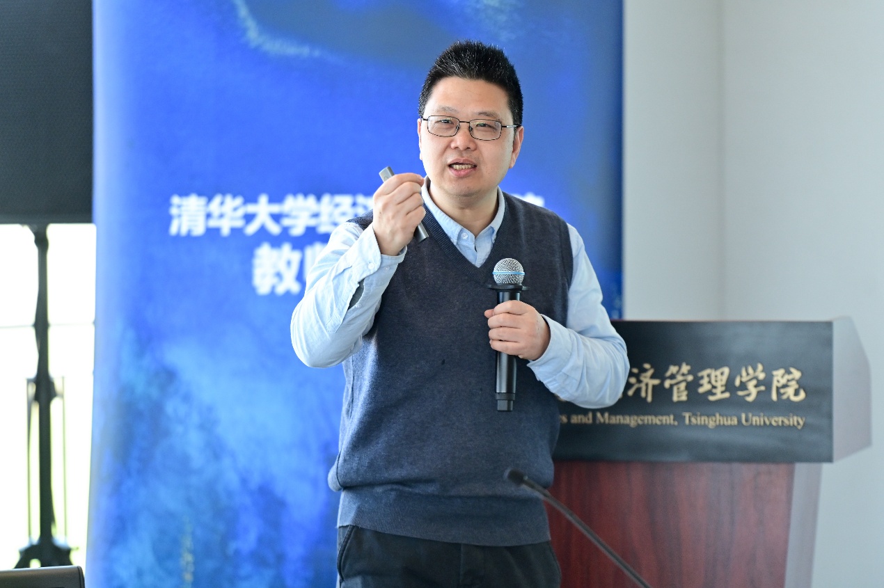 2026年4月10日,清华大学经济管理学院举办主题为“AI赋能理论性的课程教学”的教学研讨沙龙。本次活动特别邀请到清华大学物理系副教授魏斌作为主讲嘉宾,分享其在大学物理课程中融合人工智能技术辅助教学的实践经验与思考。学院副院长林志杰及30余位学院教师参加活动。本次教学研讨沙龙由院长助理张晨主持。