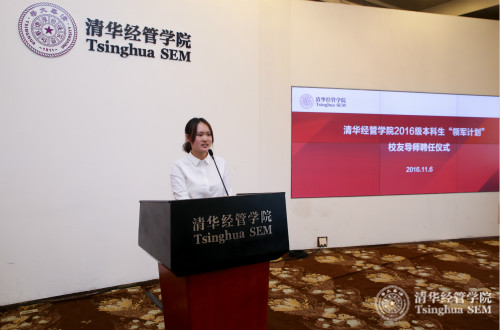校友导师代表李扬帆(经2006)在清华经管学院2016级本科生“领军计划”校友导师聘任仪式上发言