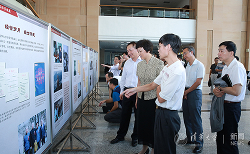 2016年9月14日下午,清华大学各单位党委书记会在清华经管学院舜德楼召开。正值“一位清华退休老教授——优秀共产党员赵家和事迹展”在舜德楼一楼大厅展出,校党委书记陈旭,常务副书记姜胜耀,副书记史宗恺、邓卫、李一兵与全体与会人员在会前一同参观了展览。