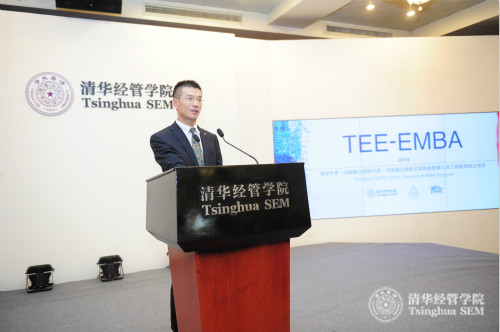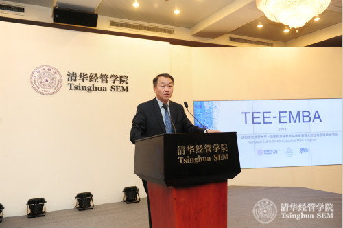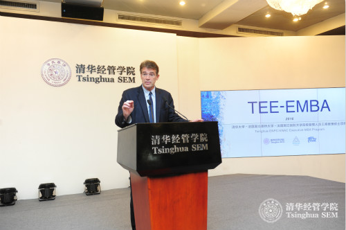 清华经管学院党委书记高建教授在致辞中说,“由清华经管学院与法国国立路桥大学、法国国立民航大学联合开办的TEE-EMBA项目是三所院校的首次合作,是中法两国在科技界和教育领域的一项创举,也是中法两国建交五十周年的见证。”他还表示,TEE-EMBA项目至今已经成功举办三期,2016级的课程在原有课程体系的基础上大胆创新,利用清华经管教学资源大平台的优势,将项目涵盖的工商管理类课程与清华经管EMBA教育进行整合,借鉴EMBA教育“天、地、人、通”的教学理念,与EMBA项目资源共享的同时,发挥国际合作项目的优势,充分将中西方管理理念融会贯通,帮助学生建立全球化的视野,从国际视角聚焦中国,乃至整个亚洲的发展。