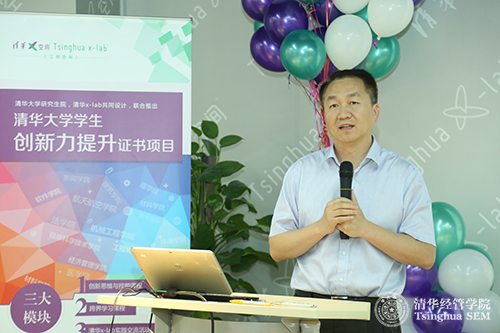 创新力提升证书项目经过一年半的发展到2016年秋季学期,共计提供37门课程,41位各院系教师参与课程教学,410名同学参加该项目的学习。作为思维与技能模块的授课教师,来自清华经管学院创新创业与战略系的程源教授表示,跨界思维是非常重要的技能,技术领域的学生更应该关注建筑、历史、艺术等人文学科,熟悉其他领域专业的语言和思维模式才能真正打通知识结构,从而实现在本专业的创新思维。