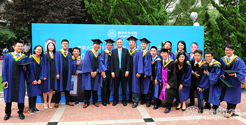 中国发展研究基金会秘书长卢迈在“毕业招待会”与清华经管学院2016届毕业生合影留念