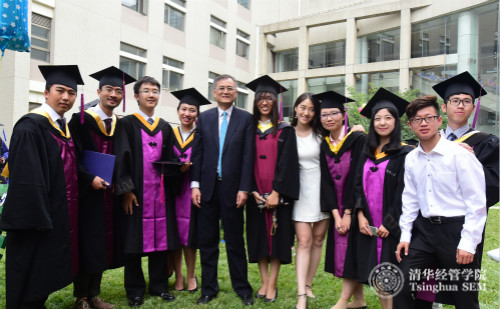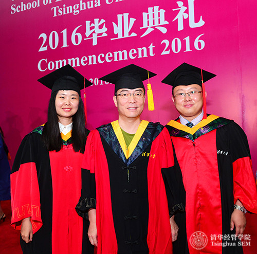 2016年7月3日中午,清华大学经济管理学院2016年毕业招待会在伟伦楼、舜德楼和庭院举行。招待会吸引了千余名毕业生及其亲友到场,经管学院的教师们也参加了此次活动,与毕业生们合影留念、欢聚庆贺。