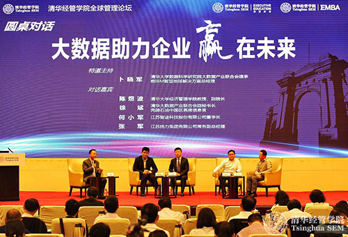 随后是圆桌对话,由清华大学数据科学研究院大数据产业联合会理事、前IBM智慧地球解决方案总经理卜晓军主持。清华经管学院副院长陈煜波教授,清华大数据产业联合会副秘书长、壳牌石油中国区首席信息官徐斌,江苏智途科技股份有限公司董事长何小军,江苏扬力集团有限公司常务副总经理张军一同围绕大数据助力企业赢在未来进行了深度讨论。