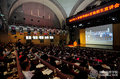 2016年5月14日下午,主题为“在清华遇见更好的自己”的2017年入学清华MBA项目首场招生宣讲会在清华大学大礼堂举行。尽管春雨连绵,宣讲会仍吸引了社会各界人士的广泛参与,能容纳千人的大礼堂座无虚席。