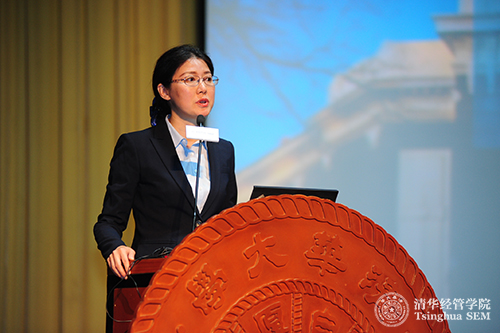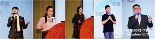 之后是五位清华MBA在校生和校友的分享环节。2015级清华MBA学生、中信证券衍生品经纪业务部高级副总裁赵林谈及自己当年报考清华MBA的经历时表示,清华MBA项目门槛高、要求严,与自身喜欢接受挑战的个性相符合;清华文化务实、厚重,与自己不喜空谈的特点相吻合;清华MBA拥有全球视野,“植根中国,面向世界”,与自身理想不谋而合;清华MBA资源丰富,“牛人”众多,与自身求知的愿望相一致。2010级清华MBA P3班校友、创业黑马合伙人、创业公社联合创始人刘凡在演讲中分享了在自己从消费品行业转向创业金融的历程。她表示,清华MBA项目所带来的全新的知识领悟、多彩的校园生活和丰富的课程选择给她留下了深刻印象。她说,清华MBA的课程需用心刻苦、勤奋学习才能学以致用。“耳闻不如眼见,眼见不如体验”,她希望在座有志向、有理想的青年才俊加入到清华MBA中来,祝愿未来清华MBA学生的学习生涯更加精彩。2014级清华MBA全球项目学生、北京立思辰科技股份有限公司集团项目部总经理,兼互联网平台事业部总经理曹倩以职业转型和海外交换两方面为主题进行了发言。她介绍,自己读清华MBA的初衷源于希望从教育集团的项目管理向金融领域实现职业转型。而在学习过程中,带着问题读MBA具有现实针对性,团队学习有助于发挥潜能、提高效率,而在全球项目中充分与国际生交流有利于形成跨文化优势。她说,海外交换则具有广义概念,她自己积极参加各种大赛,如公益型大赛、咨询大赛、创业大赛等活动。通过这些活动,她深切感受到,清华MBA带给自己眼界、见识与资源等方面的全面提升。2012级清华MBA在职项目学生、京东金融集团副总裁许凌在演讲中分享了了自己为什么要读清华MBA,即补充、丰富自身知识及职业发展所需技能;获得真挚友情,以支持未来自身发展道路;丰富自己的人生梦想。他说,来读清华MBA是一种“坚持”,它源自内心深处对知识的渴求、对梦想的追逐以及对目标的向往;同时,来读清华MBA也是一种“变化”,它带来迎接挑战的勇气、带来自我突破的追求。2013级清华MBA全职项目学生、北京司响科技有限公司合伙人副总裁刘天成在演讲中,结合自己的报考经历,将读清华MBA的感受通过三个字母加以阐释:M是Mad,B是Busy,A是Awesome,并以这三个关键词,引出三位清华MBA同学的学业、事业与生活。
