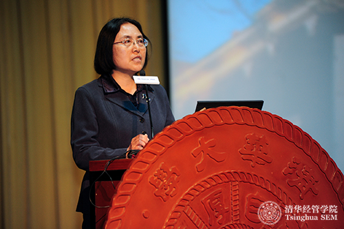 随后,清华经管学院副院长钱小军教授从五个方面对清华MBA项目进行了全面介绍。第一,清华经管学院与清华MBA项目情况介绍。作为国内首批MBA项目之一,清华MBA项目于1991年举办;项目拥有与大学融合的清华基因。项目的培养目标定位于培养具有综合管理能力的领导者,分为清华-MIT全球MBA项目和清华MBA在职项目。第二,课程体系。钱小军教授强调,2009年,学院推出新版清华MBA课程,强调领导力、企业家精神和体验式学习三个要素。必修课强化分析基础、管理基础、软技能与整合实践;选修课强调与大学融合,具有开阔、深入、丰富、系统的特点。总体课程类别可划分为实践课、产业课、特色课和名师讲坛。第三,全球视野。钱小军教授指出,“超级智库”学院顾问委员会作用巨大、贡献卓著。2013年清华和MIT共同推出清华-MIT全球MBA项目;海外学习体验遍及全球。第四,创新创业。钱小军教授谈到,学院一直把创新创业精神和企业家精神教育作为管理教育中的重要组成部分,包括清华MBA课堂、清华x-lab和清华经管创业者加速器等资源平台、创新力提升项目和创业金融实务探讨等教育方式、清华MBA创业大赛等活动形式。第五,钱小军教授还详细介绍了清华MBA的校友与职业发展情况。