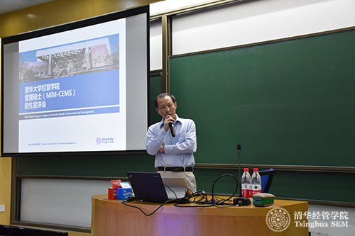 2016年5月21日,清华大学经济管理学院管理硕士项目(Master in Management,MiM)2017年入学招生说明会在舜德楼101举行。2010年,清华经管学院推出中国首个管理硕士项目(MiM)项目,该项目目前是管理硕士国际联盟(The Global Alliance in Management education-Community of European Management Schools,CEMS)在中国大陆唯一成员。此次说明会旨在通过对MiM项目与CEMS的详细介绍,促进优秀学子对项目的兴趣与了解。MiM项目学术协调人、市场营销系谢赞教授,MiM 2013级至2015级的几位在校生以及近百名有报考意向的各校大三学生参加了本次说明会。