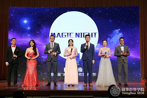 作为全校唯一三院系联合举办的研究生学生节,“水经筑”受到全校师生的广泛关注。今年晚会主题为“Magic Night”,寓意同学们放下科研重担,穿上水晶鞋,展示别样风姿,创造不夜的华彩。晚会的节目丰富多彩,歌舞器乐、说学逗唱一应俱全,为大家呈现了一场视觉盛宴。(供稿:清华经管学院研究生工作组责编:杨思群)
