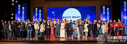 2016年3月26日晚,由清华大学经济管理学院、水利水电工程系、建筑学院共同举办的第三届水经筑“magic night”研究生学生节在清华大学大礼堂举行。校党委副书记史宗恺教授、建筑学院院长庄惟敏教授、经管学院研究生工作组组长杨思群教授、水利系研究生工作组组长朱德军教授以及多位校友和企业代表来到晚会现场,与同学们同聚共乐。