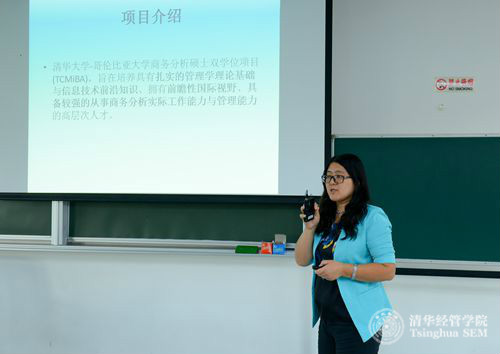 2016年4月7日,清华大学-哥伦比亚大学商务分析硕士双学位项目2016年推免招生说明会在清华大学经济管理学院伟伦楼409举行。清华经管学院副院长徐心教授和项目学术主任林丽慧副教授为到场同学进行了项目说明。