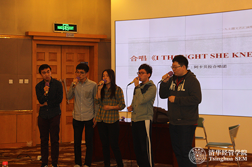除了话剧表演,当晚,清华大学阿卡贝拉合唱团,经管学院“一二·九”合唱团以及来自经管学院四字班的同学等还带来了其他精彩纷呈的节目。(供稿:学生工作组责编:郭朝晖)