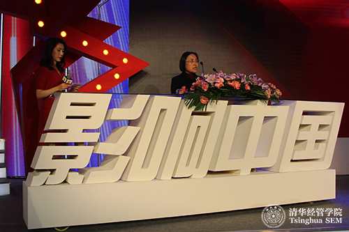清华经管学院副院长、弗里曼讲席教授、经济系系主任白重恩(右一)在颁奖现场介绍清华x-lab