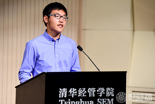 清华经管学院副院长、管理科学与工程系徐心教授首先致辞。他的致辞聚焦在三个关键词——“宽广、深刻、融合”。徐心教授提到清华大学“通专融合”的基本教育理念,引用清华大学前校长梅贻琦先生“大学教育的重心应在通”和王国维先生“学无有用无用之分”的观点,希望同学们通过第二学位的学习拓宽自己的知识领域和视野。徐心教授还以谷歌公司利用搜索大数据预测流感疫情为例,鼓励同学们在学习经济管理的基本知识后,要有自己的进一步思考,并结合本专业进行深入研究。之后,徐心教授分享了自己对“融合”的理解,提出第二学位的学习应该是友谊、知识、文化等多方面的融合。徐心教授还提到清华经管学院顾问委员走进课堂、学生社团等学院重要资源都对第二学位同学开放,这些都是为了让第二学位的同学能更好地融入经管大家庭。最后,徐心老师寄语全体第二学位同学,“在一个宽广深刻的知识平台上实现融合,博学、慎思、笃行”。