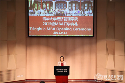 2015年9月12日,清华大学经济管理学院2015级MBA开学典礼在伟伦楼报告厅举行。清华经管学院副院长、领导力与组织管理系钱小军教授,领导力与组织管理系陈晓教授,创新创业与战略系高旭东教授,领导力与组织管理系姜朋教授,领导力与组织管理系张勉教授和金融系朱玉杰教授等,与2015级MBA新生一同出席了开学典礼。典礼活动由清华MBA教育中心执行主任张磊主持。