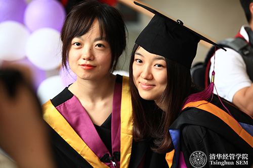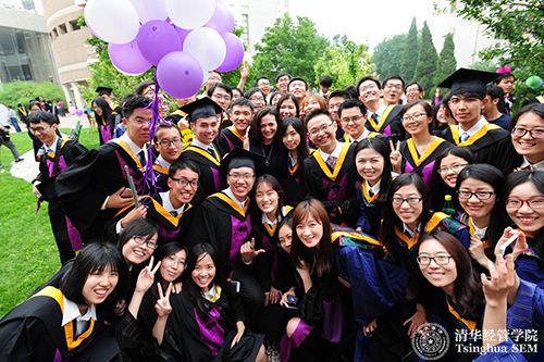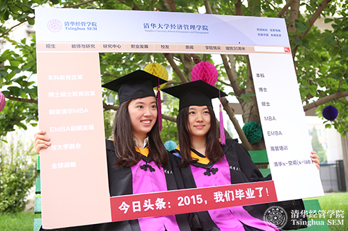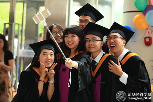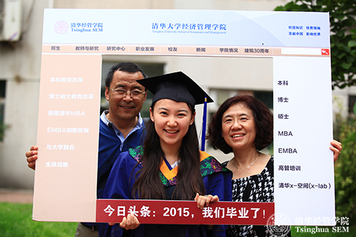 2015年6月27日中午,清华大学经济管理学院2015年毕业招待会在学院伟伦楼、舜德楼和庭院举行。近千名毕业生及其亲友到场,并与老师们一起欢聚庆贺。此次毕业典礼的演讲嘉宾,Facebook公司首席运营官谢丽尔•桑德伯格(Sheryl Sandberg)女士也被现场的热烈氛围所感染,并与现场的毕业生亲切交谈、合影留念。