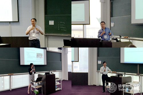 清华经管学院教授作专题报告(左上:党委书记、副院长、创新创业与战略系高建教授 右上:领导力与组织管理系张进教授 左下:市场营销系陈荣教授右下:管理科学与工程系黄朔教授)