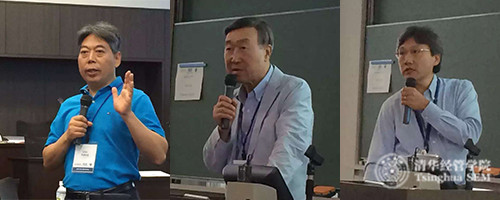 三校教授作联合报告(从左到右):清华经管学院创新创业与战略系高旭东教授、韩国科学与技术高等研究院商学院Sung-Joo Park教授、日本庆应大学商学院Masahiro Okada教授