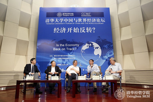 2015年7月5日,主题为“经济开始反转?”的第二十四届清华大学中国与世界经济论坛在清华大学经济管理学院伟伦报告厅举行。应邀出席活动的嘉宾有:国务院发展研究中心原副主任刘世锦,国务院参事特约研究员、国家统计局原总经济师姚景源,北京大学光华管理学院教授曹凤岐,华远房地产集团原董事长任志强,以及清华大学中国与世界经济研究中心研究员袁钢明。论坛由清华经管学院弗里曼讲席教授、清华大学中国与世界经济研究中心主任李稻葵主持,清华大学副校长谢维和教授出席并致辞。