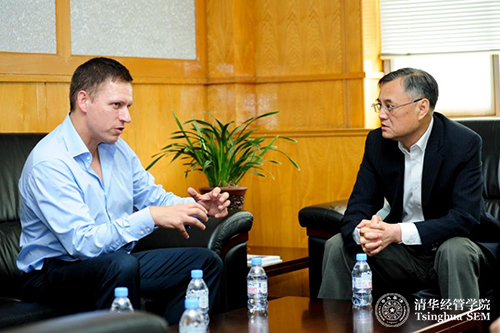 5月28日,《从0到1:开启商业与未来的秘密》作者、PayPal联合创始人彼得•蒂尔(Peter Thiel)先生一行访问清华大学经济管理学院,拜访清华经管学院院长钱颖一教授。清华经管学院党委书记、副院长高建教授参加了会见。