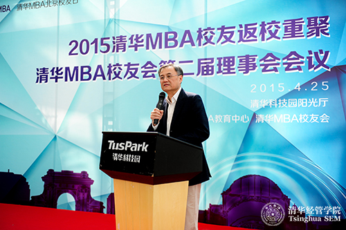 2015年4月25日,清华MBA校友会2015年理事大会暨第二届理事会会议在清华科技园召开。会议审议了章程修订案和理事会推荐名单,选举1997级校友、启迪控股总裁王济武担任新一届会长。首任理事长、清华经管学院院长钱颖一,副院长郦金梁出席会议。钱颖一院长为第二届理事一一颁发证书。会议由理事会秘书长姜培兴主持。