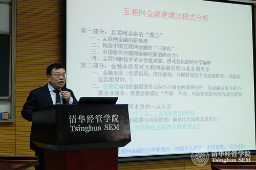 招生会结束后,清华经管学院金融系张陶伟教授为大家现场教授了一节主题为“互联网金融的逻辑及模式分析”的公开课,让大家亲身感受FMBA项目课程的魅力。