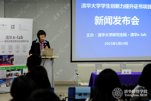 清华经管学院党委书记、副院长高建教授在发布会上对清华大学学生创新力提升证书项目进行详细介绍