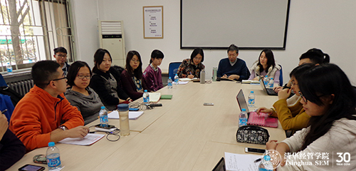 2014年11月27日下午,清华大学经济管理学院2014年秋季学期本科教学咨询委员会在伟伦楼110召开,主管教学工作的院长助理、领导力与组织管理系钱小军教授,教学办公室主任、金融系朱玉杰教授,教学办公室乔蓉老师,周光老师以及20名本科教学咨询委员会委员参加了会议。