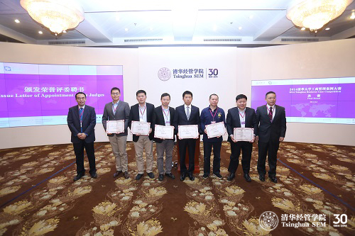大赛评委会由焦捷教授亲自挂帅,清华经管学院管理科学与工程系谢滨教授同时担任联席主席。评委会主席为来自企业和专业机构的评委颁发了案例大赛荣誉评委证书。来自案例企业的评委有宜信公司高级副总裁刘大伟,大河套投资有限公司董事长慕朋举,东风裕隆汽车有限公司营销总部总部长单志东。来自专业机构的评委有思略特(原博斯)咨询公司合伙人彭波先生,国科嘉和投资管理公司执行合伙人陈洪武先生,商道纵横运营总监张睿先生。