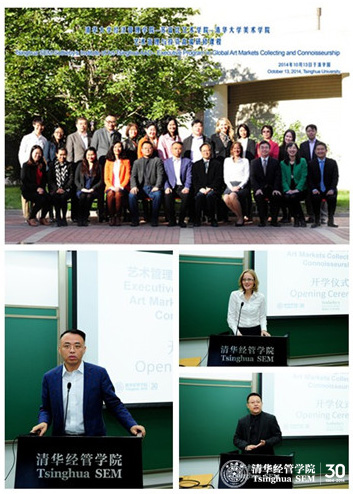 2014年10月13日,由清华大学经济管理学院、清华大学美术学院、苏富比艺术学院携手打造的“艺术管理与投资高端研修课程”于清华经管学院顺利启航。清华经管学院党委副书记朱岩教授、清华美术学院院长鲁晓波教授、清华美术学院副院长张敢教授、苏富比艺术学院公开项目总监Lyn Calzia女士出席了开学典礼。