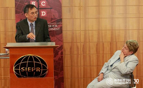 课程的第一天,世界银行前首席经济学家、国际货币基金组织常务副总裁Anne Krueger教授为同学讲授“增长与创新的经济政策”。Anne Krueger教授是最早提出“寻租”概念、最早研究市场寻租行为并有量化结果的经济学家。她的课程以二战以来的经济发展作为开端,对比了印度与韩国在经济发展中的不同路径选择所得到的不同结果,意在从宏观的角度说明制度和经济政策对于创新的基础和决定意义。
