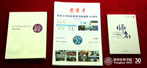 建院30周年期间出版的《三十风采》画册、《新清华》经管学院专刊、再版的《师者——清华经管学院教授访谈录》文集