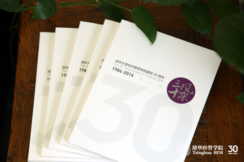 2014年4月25日,为庆祝清华大学经济管理学院建院30周年而编写的纪念画册《三十风采》正式面世。这本画册由三个部分组成,即“三十历程”、“卓越成就”和“岁月情怀”。画册的内容围绕这三个部分,以不同角度、侧面反映建院30周年过程中,学院历经的创业艰辛与发展历程,突出展现建院30年来学院所取得的令人瞩目的卓越成就,以及在这期间经管人所表现出的卓然风采与精神面貌。