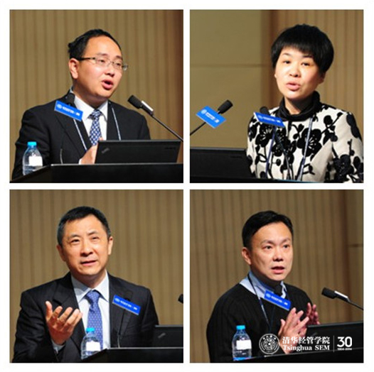 接下来,清华经管学院副院长郦金梁教授分享了“清华MBA的招生与课程改革”。清华MBA的招生方法,即“提前面试+国家线录取”模式招生改革的内容、步骤、目的、政策要点、挑战、影响等,还包括录取学生的基本情况、动态变化及其对MBA管理的影响。清华MBA的课程体系,涵盖扎实严谨的必修课模块、种类繁多的各种MBA选修课、经管学院选修课、清华大学选修课、与实践结合的毕业报告环节,其中包括大量力行实践的特色课,旨在通过“品格与软技能开发、体验式学习、整合性学习、全球视野与经历”四项措施,实现知识与能力、学术严谨性与实践相关性、中国根基与全球视野的三种平衡,使学生在品格、知识、实践三个环节上全面提升,为实现培养具有综合管理能力的未来领导者的目标打下坚实基础。今年4月推出的清华MBA C-SPOCs Community Based Small Private Online Courses)课程,采用基于新信息技术的群组混合教学模式,由自主学习(Off Campus)和课堂学习(On Campus)两部分构成。2014级清华MBA学生在正式注册入学前就已进行所选课程的自主学习部分,入学后再进行课堂学习部分。应用这种方式,学生可以突破时间和所在地域的局限,选择自己最便利的方式,通过互联网接入经管学院在线MBA课程的平台进行学习。