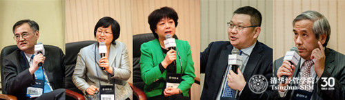 论坛二:管理学院未来新焦点(从左至右:钱颖一、黄丽华、苏秦、项兵、周林)