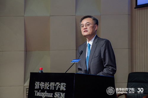 中国建筑材料集团有限公司董事长、党委书记,全国工商管理专业学位研究生教育指导委员会委员宋志平先生为论坛做主旨发言。宋志平首先祝贺清华经管学院在30年的发展中取得的伟大成就,并感谢清华经管学院在中国建筑材料集团干部培养中做出的贡献。宋志平从三个方面展开他的演讲。一是对管理教育的体会。管理水平持续提高源于持续不断的学习。企业经营管理即不断解题求证的过程。MBA学习的重点在于把管理学院中学到的案例和经验利用学到的分析工具,通过实践、认识、再实践、再认识的循环,有效地应用在企业实践。二是管理教育对企业发展的作用。管理教育不仅改变管理者,为企业培养富有实践经验、既懂经营又懂管理的高素质高层次的复合型人才,更塑造管理团队。三是从企业角度探讨对管理教育的期许。中国企业正面临经济发展新阶段的改革关口,挑战、机遇并存,需要在管理思想、运行机制、商业模式等方面开拓进取,以适应新时代,这就对管理学院提出了更高期待。管理学院的人才培养要“知行合一”,理论创新要“中西合璧”,问题研究要“聚焦当下”。