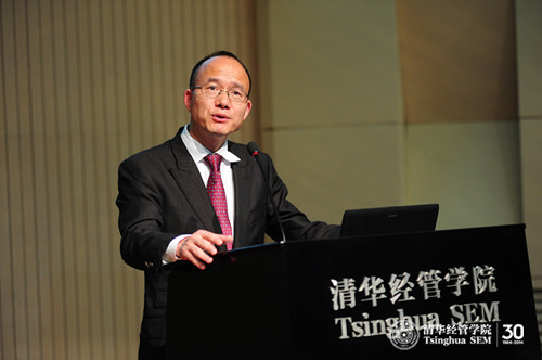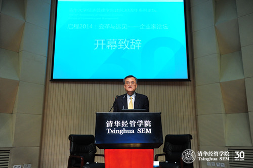 清华经管学院院长钱颖一教授在开幕致辞中说,非常高兴在清华大学经济管理学院建院30周年之际,与各位企业家和校友相聚清华,共同探讨中国企业的改革和发展之路。刚刚在3月31日举办的“致敬1984:征程与梦想”企业家论坛,与柳传志先生和王石先生共同回顾了中国企业的既往征程。而今天的主题是思考未来,宁高宁先生和郭广昌先生将与清华经管学院的教授们一同探讨中国企业的改革路径,畅谈商业前景,对话商业蓝图,分享在新的历史机遇下企业未来的发展构想。