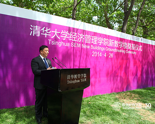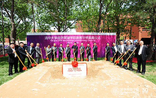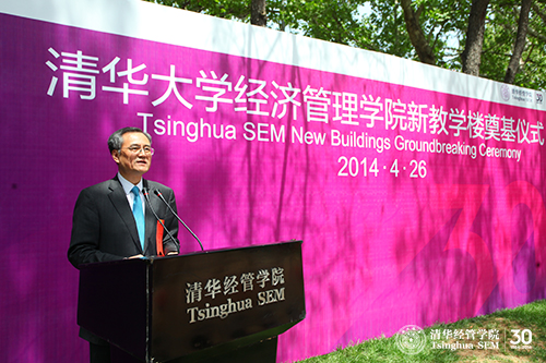 2014年4月26日,清华大学经济管理学院新教学楼奠基仪式在新清华学堂南侧举行。清华大学校长陈吉宁、副校长谢维和、清华大学副秘书长、基金会秘书长李家强、清华经管学院院长钱颖一、清华经管学院顾问委员会委员、特聘教授、新教学楼捐赠校友和师生代表共同参加。奠基典礼由清华经管学院杨斌教授主持。