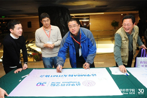 清华校友总会郭向东老师,清华MBA教育中心校友总监于红蕾老师,金融协会秘书长丁大巍、副秘书长王锦海,节能环保协会副秘书长李诗常,多位MBA班级召集人,以及近160名校友和学生、业界朋友参加了活动,共同见证了清华MBA校友ITMT协会的成立。参会校友还纷纷签名,共同祝福清华经管学院即将迎来建院30周年。(供稿:MBA教育中心 通讯员:于红蕾 责编:云涛 )