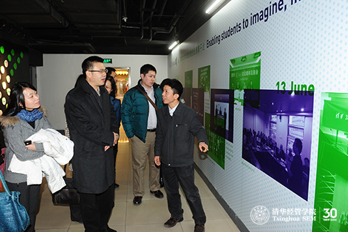 2014年1月8日上午,中关村科技园区管理委员会(以下简称中关村管委会)副主任马胜杰、中关村管委会创业服务处处长杨彦茹一行七人来到清华x-lab(清华x-空间——清华大学创意创新创业教育平台)科技园场地实地调研清华大学创意创新创业教育平台建设情况,此行是中关村管委会第三次调研清华x-lab。清华经管学院副院长高建教授、清华x-lab主任张帏教授、执行主任毛东辉老师和执行副主任黄瓅老师接待调研。