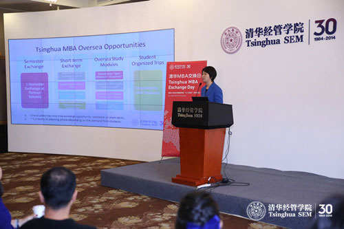 清华MBA教育中心联合清华经管学院国际事务办公室和清华MBA同学会,于2013年11月23日下午举办了首届清华MBA“交换日”活动。这是清华经管学院30年院庆系列活动之一。十几位清华MBA校友来到活动现场,与近百名MBA在校生和2014年条件录取考生分享了他们在校期间参加过的长短期交换项目,讲述了他们的所闻所见。同时,几名正在清华大学进行秋季学期交换的外国学生也在会场上给大家介绍了自己的国家和学校、项目,并向在校生们发出了诚挚的邀请,欢迎同学们到他们的母校学习生活。