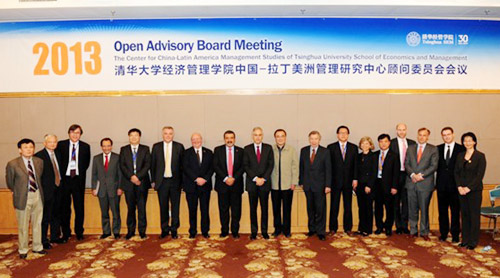 2013年10月21日,清华大学经济管理学院中国-拉丁美洲管理研究中心(以下简称“中心”)2013顾问委员会暨第一届题为“拉美商务环境与中国企业投资机会”的圆桌论坛在清华大学经济管理学院举行。智利驻华大使Luis Schmidt Montes先生、巴西驻华大使Valdemar Carneiro Leao先生和墨西哥驻华大使Julián Ventura先生作为特邀嘉宾出席会议。本次顾问委员会会议由清华大学副校长谢维和教授与智利卢克希奇集团主席安东尼克•卢克希奇(Andrónico Luksic)先生共同主持。参加会议的还有对外经济贸易大学副校长,智利天主教大学商学院院长,智利安德雷斯•贝洛大学拉美中国研究中心主任,巴西FGV圣保罗商业管理学院院长,海尔集团、中国五矿集团公司、中国进出口银行、巴西银行负责国际业务的副总裁以及国务院国有资产监督管理委员会首席经济学家等。会前,清华大学经济管理学院院长钱颖一教授迎接了与会的顾问委员。